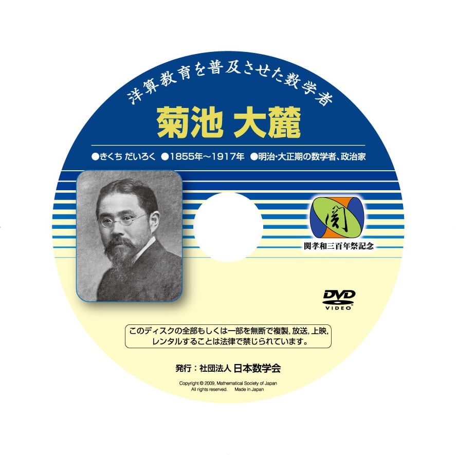 「世界的な業績を残した近代日本の数学者―高木貞治」(高木DVD,約15 分) と「洋算教育を普及させた数学者―菊池大麓」(菊池DVD,約13 分) (2枚組) の申し込みがあった場合については,できるだけ配付させていただくようにいたします.