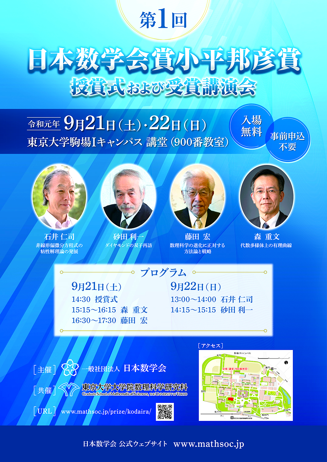第1回日本数学会賞小平邦彦賞 授賞式および受賞講演会