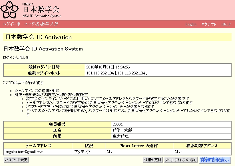 日本数学会ユーザーIDアクティベーションシステム・マニュアル |