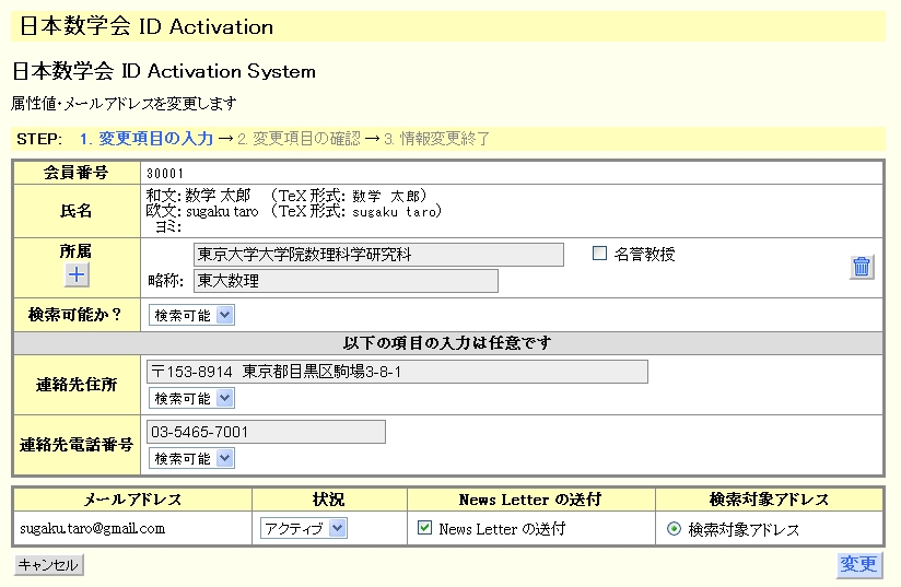 事務局の会員データベースとは独立に運用しますので、変更届を忘れずに事務局にお送りください。