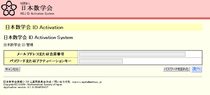 初回のログインでは、会員証番号とActivation Key 入力して「次へ」をクリックします。