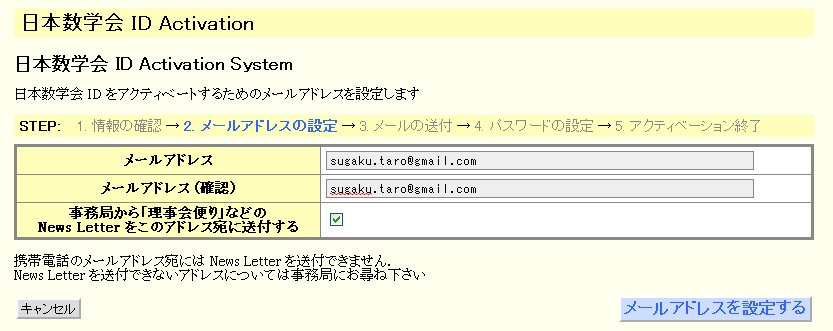 Newsletter の送付を希望する場合は、ここでチェックします。 「理事会だより」などのNewsletter に関しては、準備ができ次第、 数学会WEBの会員向けのページでご案内します。