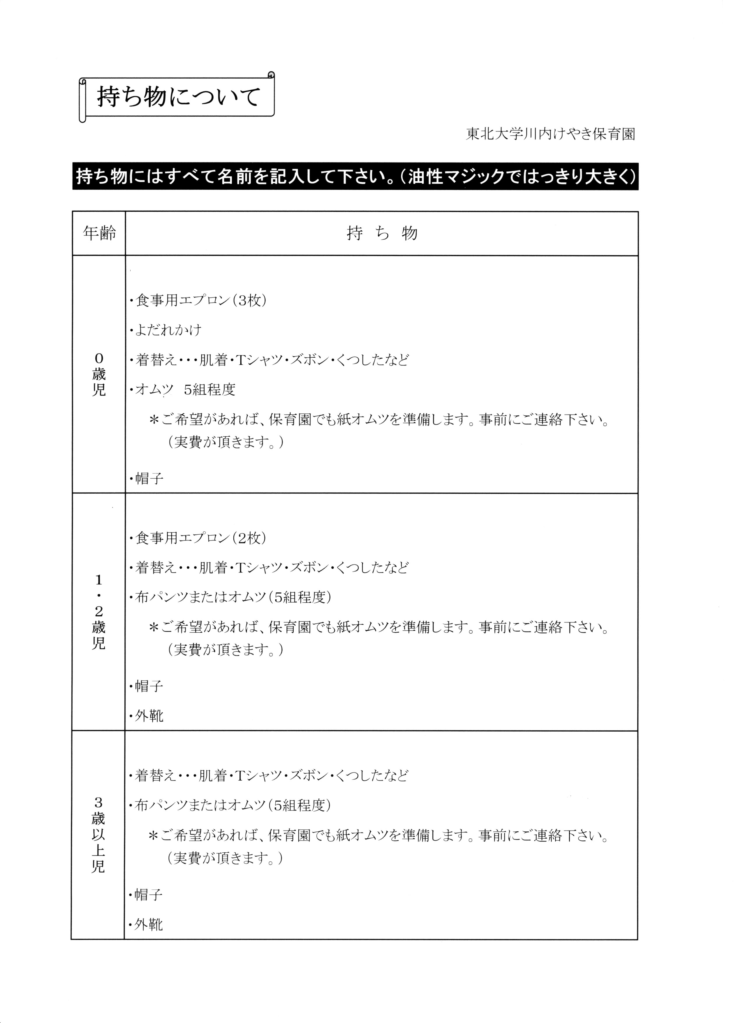 (3)その他保育園指定の 「持ち物リスト」にあるもの