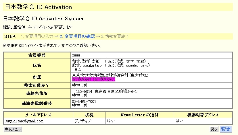 このまま変更するときは、「変更」をクリックします。変更を取りやめるときは、「キャンセル」をクリックします。