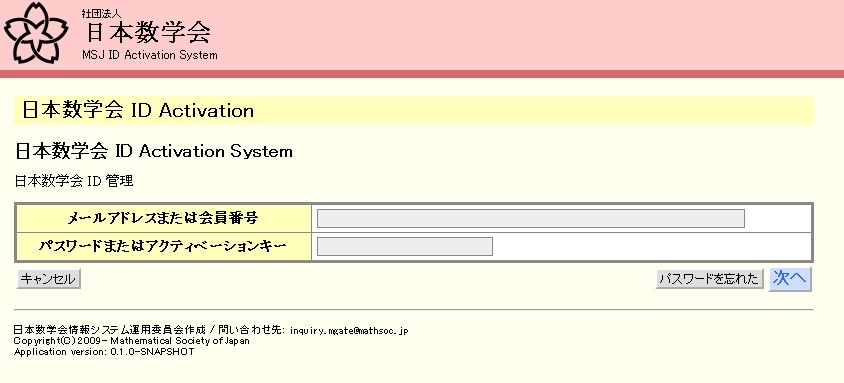 初回のログインでは、会員証番号とActivation Key 入力して「次へ」をクリックします。