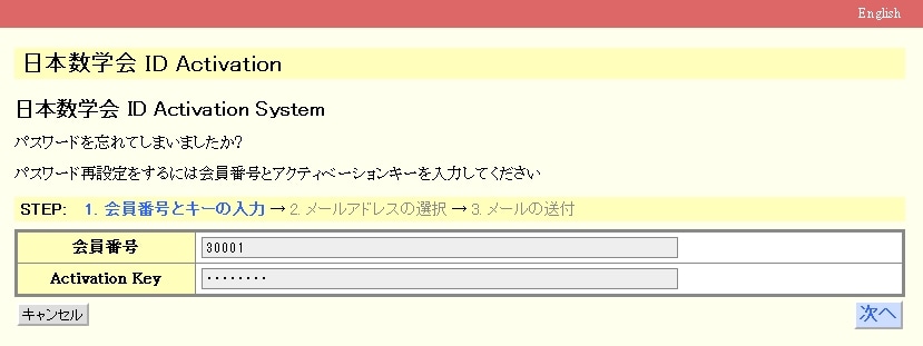 パスワードを忘れた場合 STEP 1 会員番号とActivation Key を入力