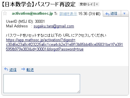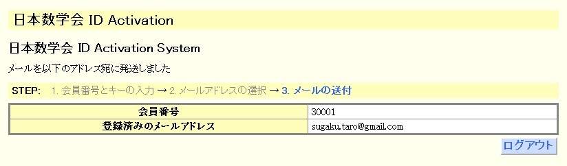 ここで「ログアウト」をクリックして(2重ログインのエラーを避けるために)ログアウトします。そして、確認メールをチェックします。