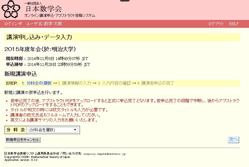 まず、分科会・特別セッションを選択して、次へ のボタンをクリックします。
