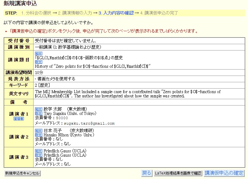 講演申し込み STEP 3 入力内容の確認