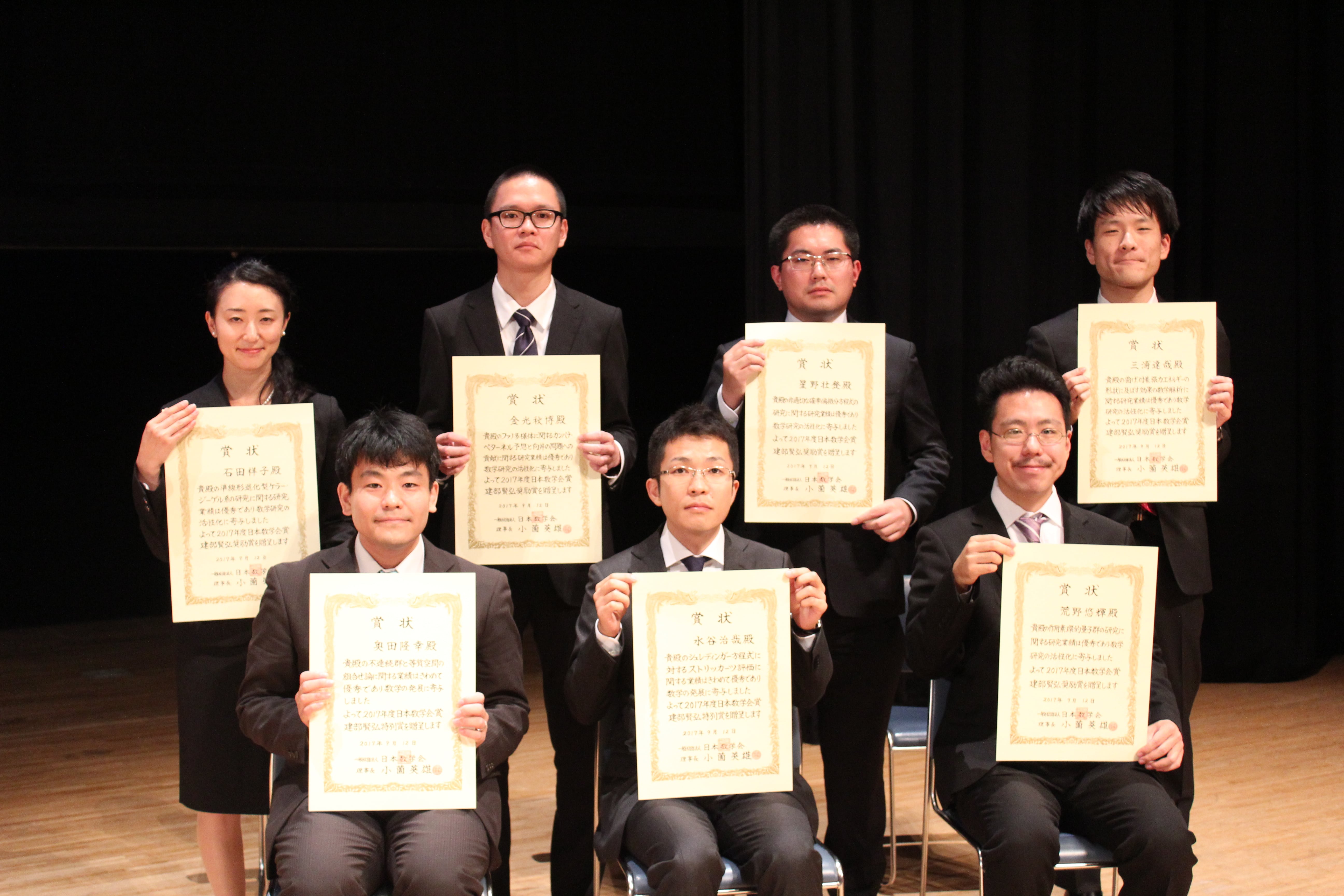 建部賢弘賞には特別賞と奨励賞の2種類があります。特別賞は優秀な業績を挙げた 35 歳以下の数学会員に,奨励賞は将来性に溢れる研究を行なっている 30 歳以下の会員に授与されます。ただし種々の困難のもとで数学の研究を続け日本数学会の活性化に寄与した会員に対しては,上の規定にかかわらず年齢制限を設けず特別賞・奨励賞の対象に加えることになっています。授賞の人数は特別賞が年3名程度,奨励賞は年5名程度とし,授賞式は秋季総合分科会において執り行います。